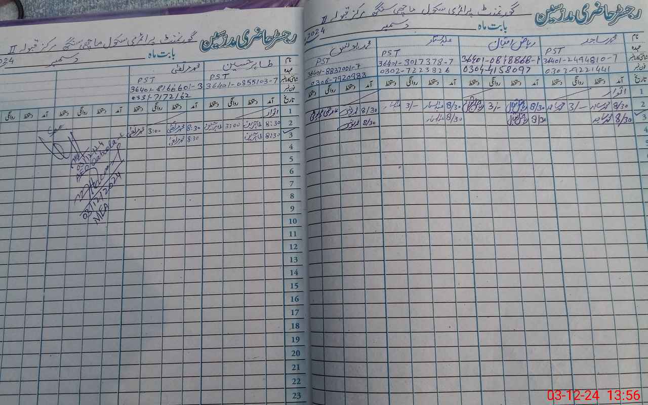 | Name: MU**** SA**** Designation: (School Headmaster's/Headmistress's) PST Phone/Cell Number: 03**** |