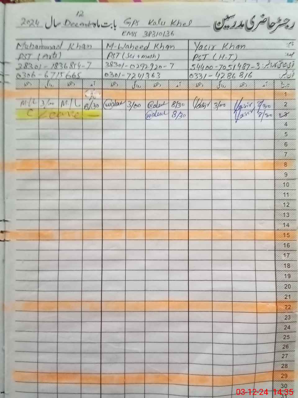 | Name: MU**** KH**** Designation: (School Headmaster's/Headmistress's) PST Phone/Cell Number: 03**** |