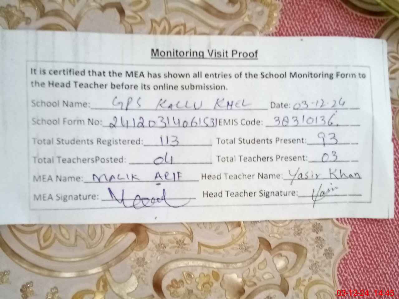 | EMIS Code: 38310136 | Name of School: GPS KALU KHEL | |||