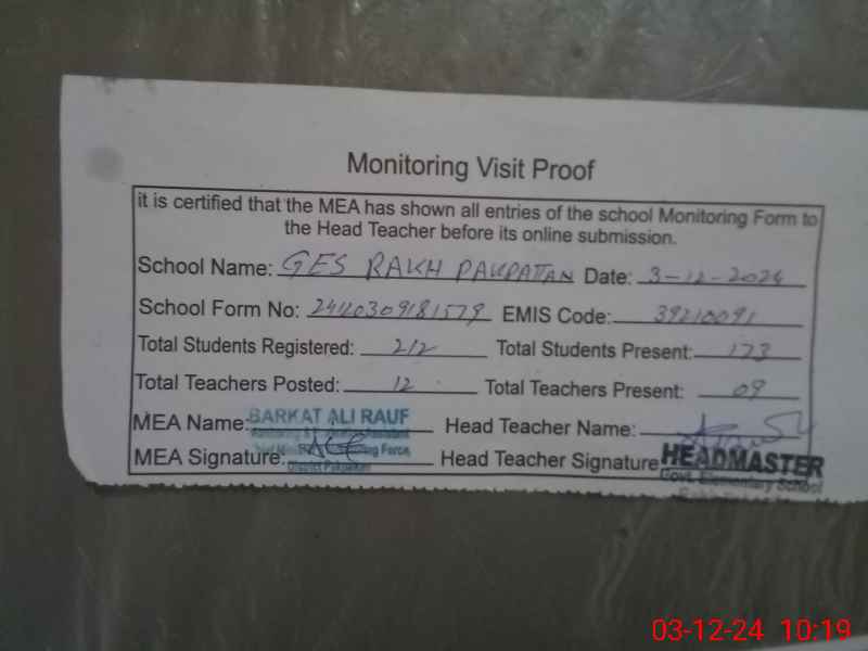 | EMIS Code: 39210091 | Name of School: GES RAKH PAKPATTAN | |||