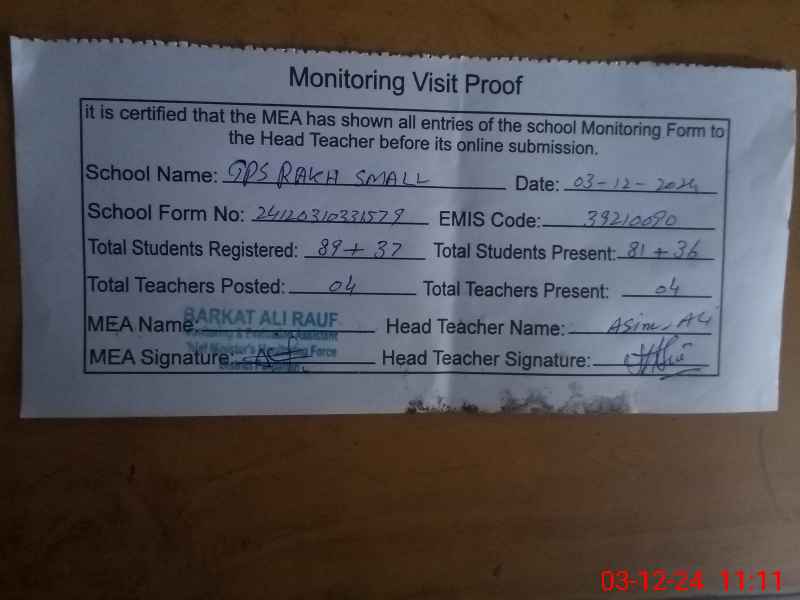 | EMIS Code: 39210090 | Name of School: GPS RAKH SMALL P/O 17/SP PAKPATTAN | |||