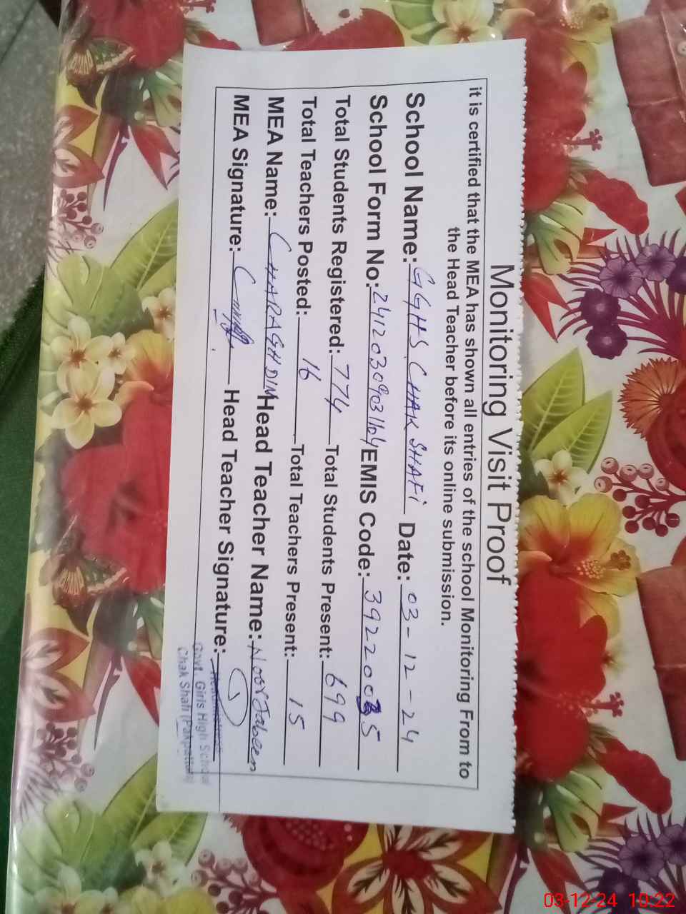 | EMIS Code: 39220035 | Name of School: GGHS CHAK SHAFI | |||