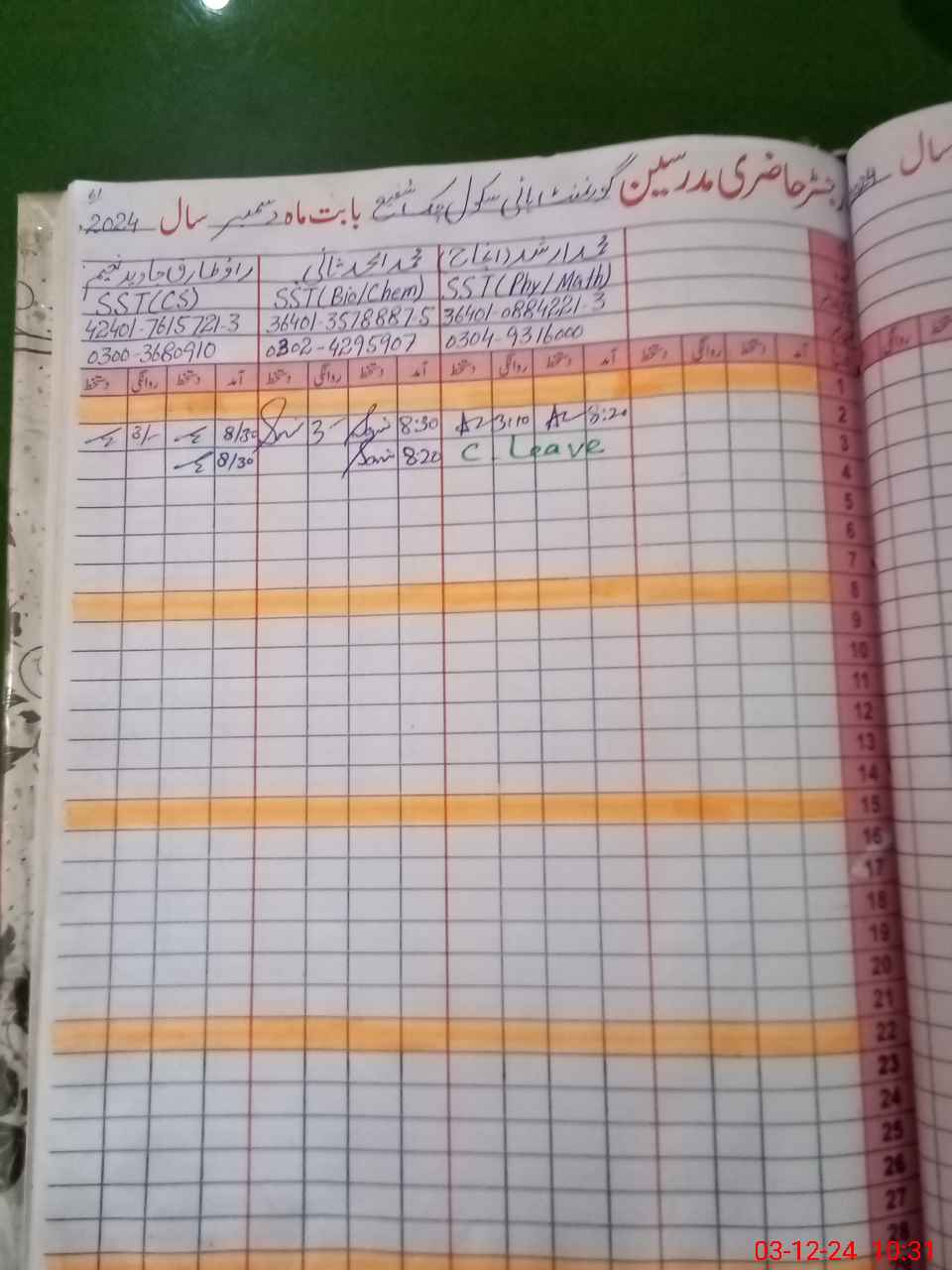 | CNIC | Full Name | Designation | R/C | Absence During Last Calender Month |