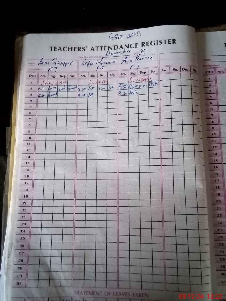 | Name: AM**** GH**** Designation: (School Headmaster's/Headmistress's) PST Phone/Cell Number: 03**** |