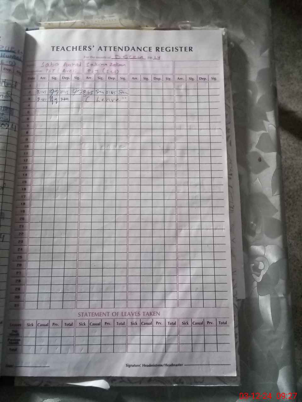 | 31**** | Sa**** Ze**** | 1 | 5 | 0 | 0 | 0 | 0 | 0 | 0 | 0 | 5 | Absent (Un-Authorized) | |