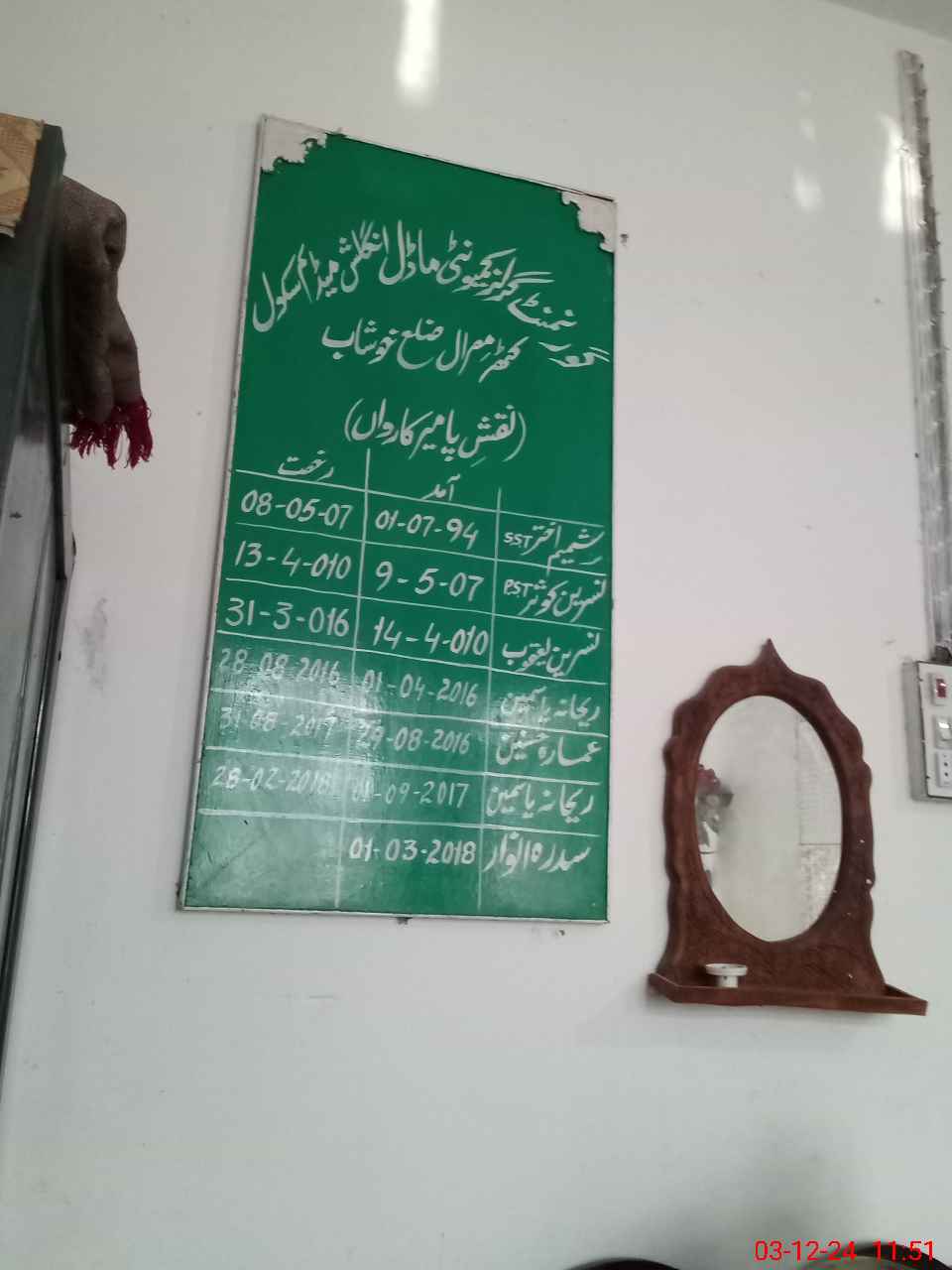 | District: KHUSHAB | Tehsil: KHUSHAB | Markaz: CHAK NO 54/MB (FEMALE) | Level: Middle | |
