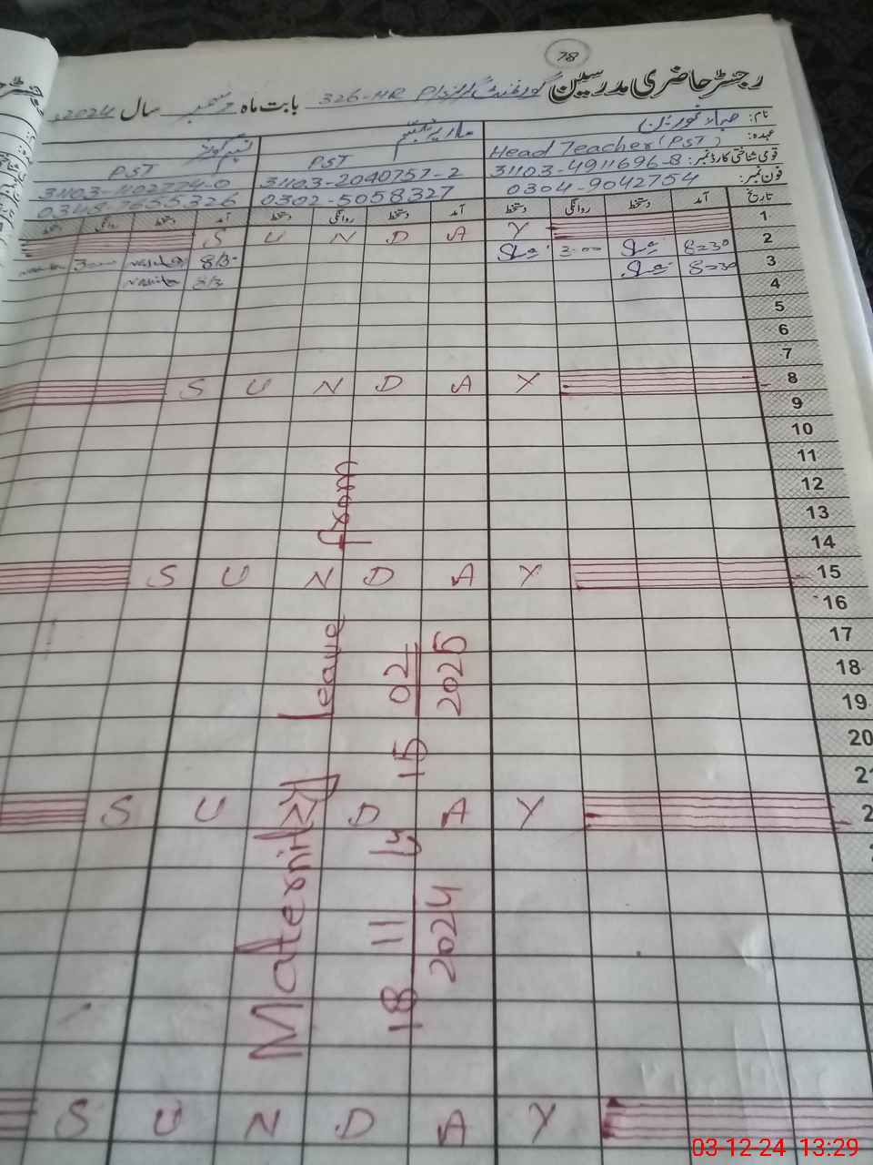 | 31**** | Ma**** Ta**** | Contract | 12 | 0 | 0 | 12 | 0 | 0 | 0 | 0 | 0 | Maternity | |