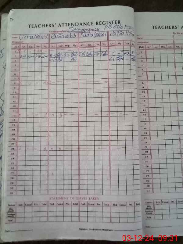 | Name: Uz**** Na**** Designation: (School Headmaster's/Headmistress's) PST/PTC/JV Phone/Cell Number: 03**** |