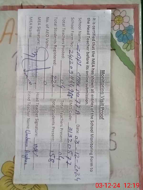 | EMIS Code: 31320577 | Name of School: GMPS CHAK 77/A | |||