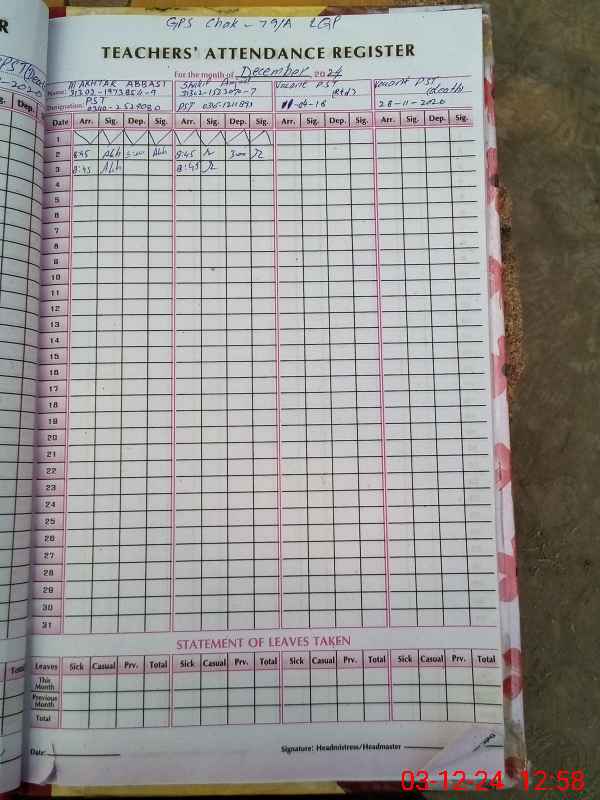 | Name: Mu**** Ak**** Ab**** Designation: (School Headmaster's/Headmistress's) PST Phone/Cell Number: 03**** |