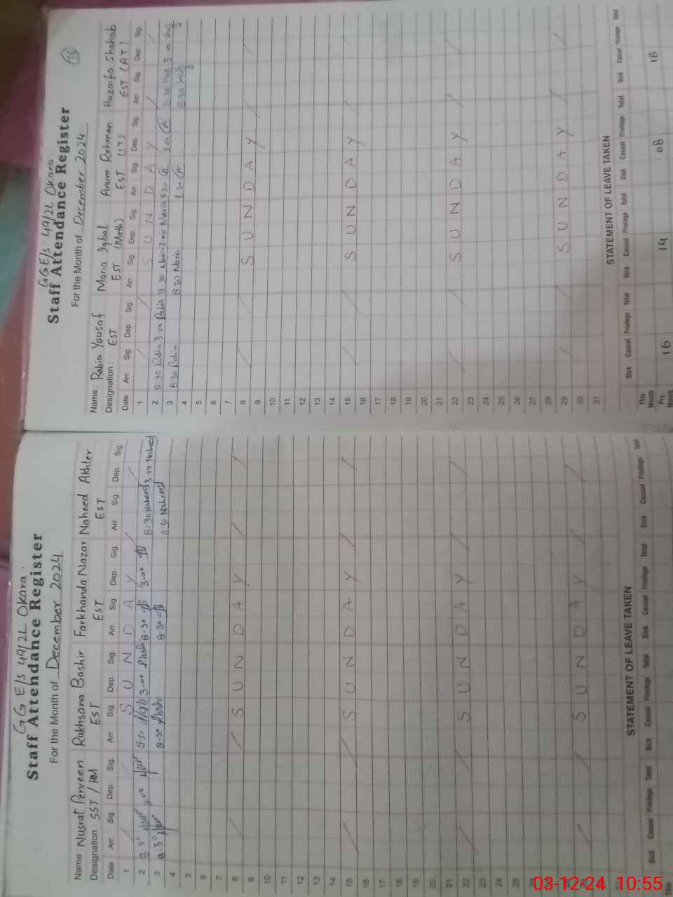 | CNIC | Full Name | Designation | R/C | Absence During Last Calender Month |