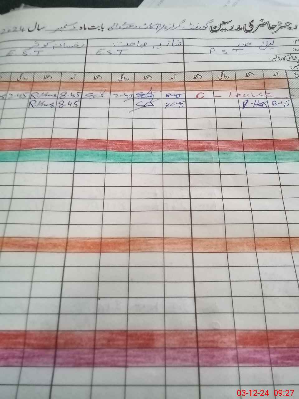 | CNIC | Full Name | Designation | R/C | Absence During Last Calender Month |