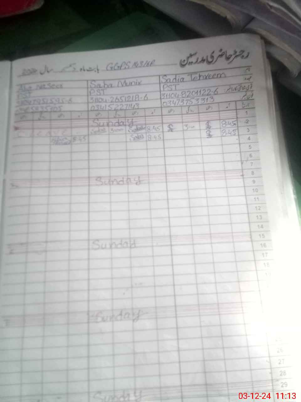 | Name: SA**** TA**** Designation: (School Headmaster's/Headmistress's) PST Phone/Cell Number: 03**** |