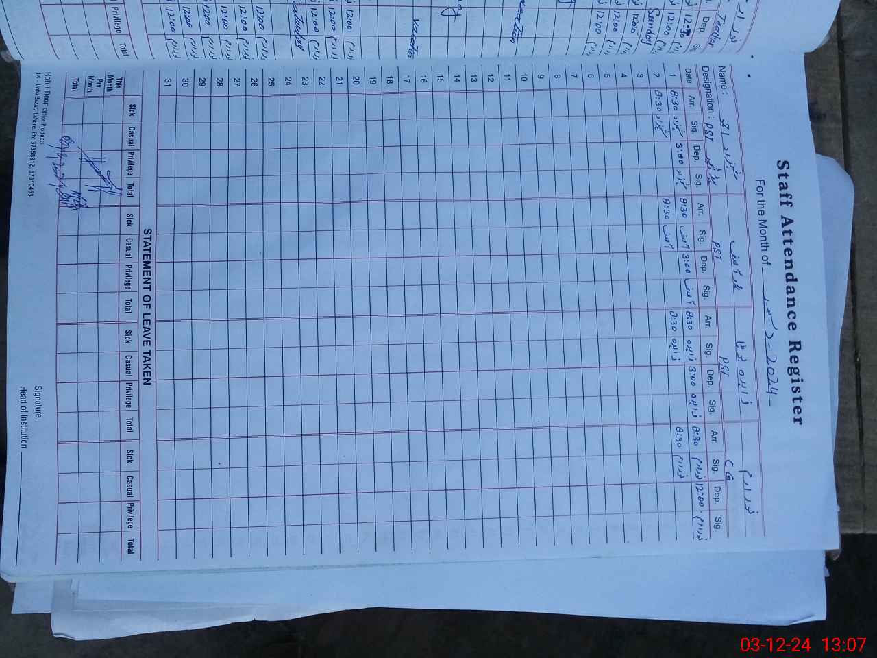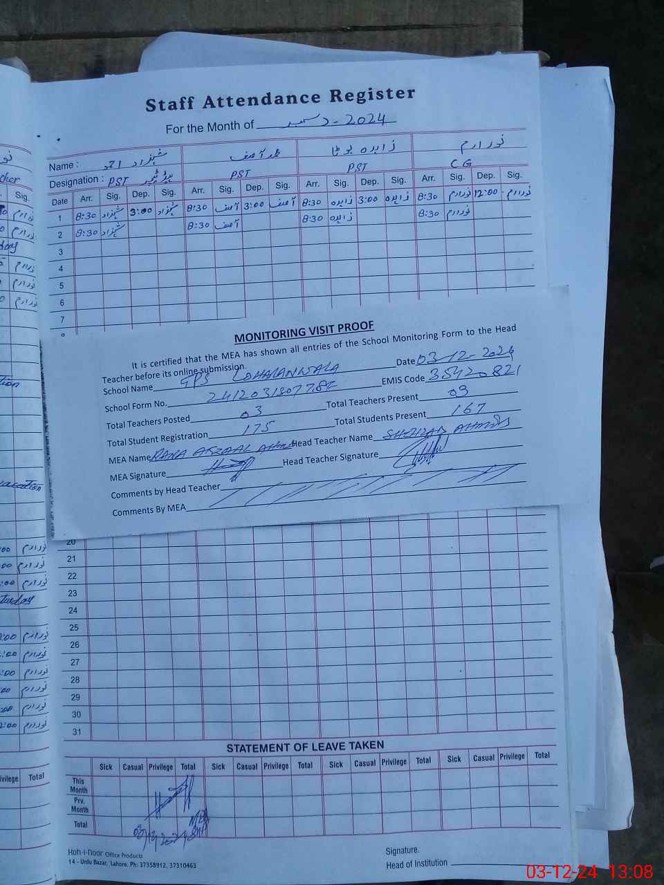 | Name: SH**** AH**** Designation: (School Headmaster's/Headmistress's) PST Phone/Cell Number: 03**** |