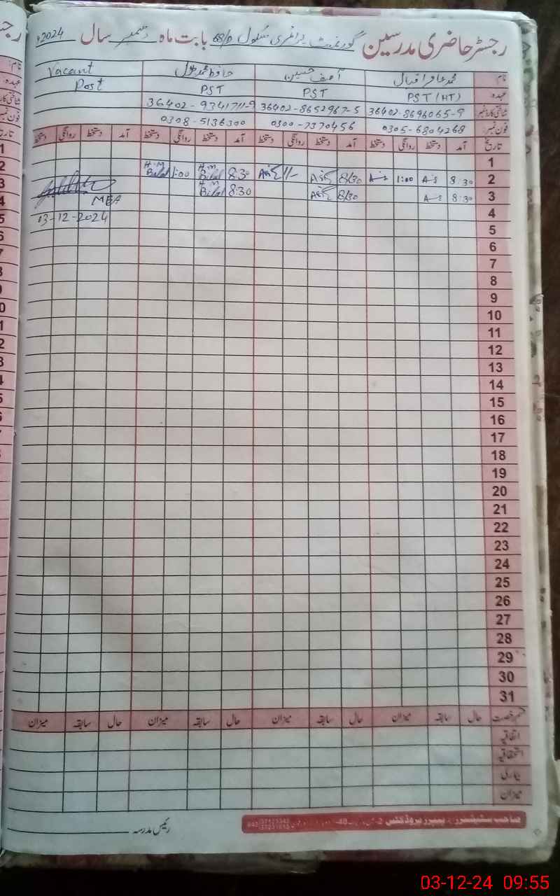 | Name: Mu**** Aa**** Iq**** Designation: (School Headmaster's/Headmistress's) (PST SCI MATH) Phone/Cell Number: 03**** |