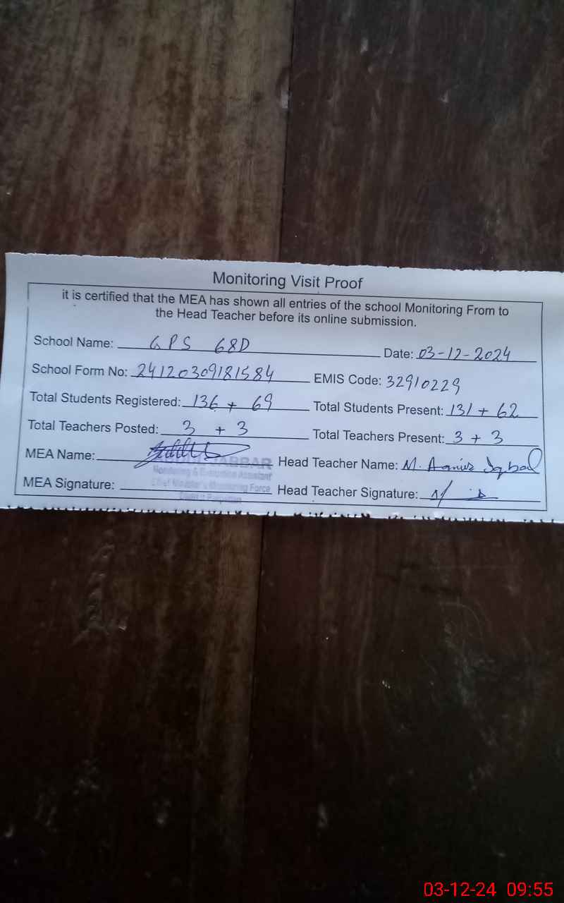 | EMIS Code: 39210229 | Name of School: GPS 68/D | |||