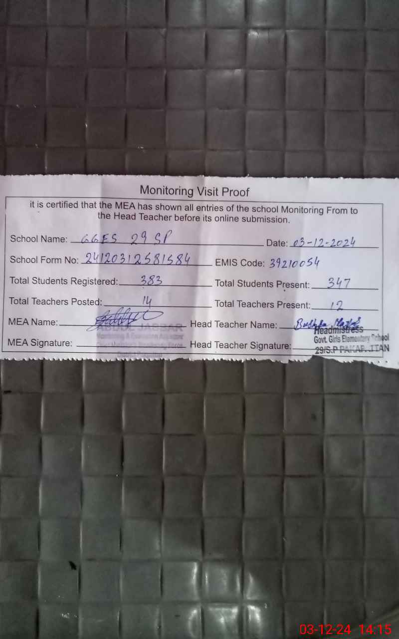 | EMIS Code: 39210054 | Name of School: GGES 29 SP | |||