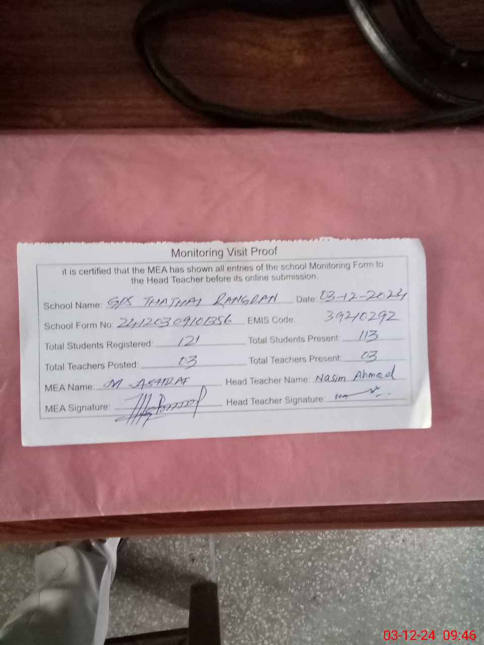 | EMIS Code: 39210292 | Name of School: GPS THATHAI RANGRAN P/O CHAK BEDI PAPATTAN | |||