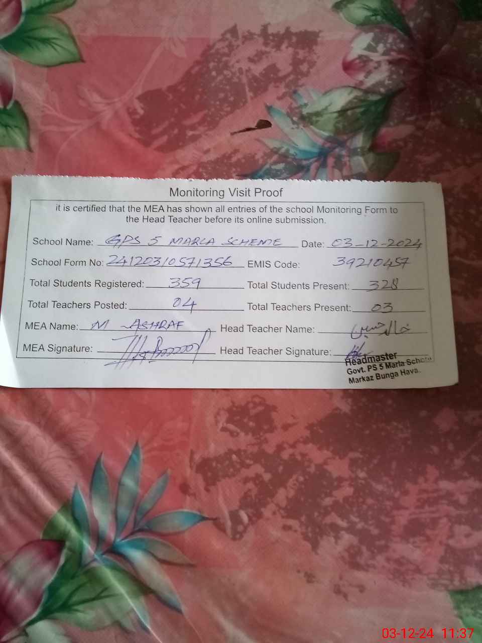| EMIS Code: 39210457 | Name of School: GPS 5-MARLA SCHEME ADDA CHAK BEDI | |||