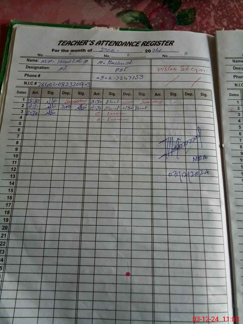 | Name: Kh**** Hu**** Designation: (School Headmaster's/Headmistress's) PST Phone/Cell Number: 03**** |