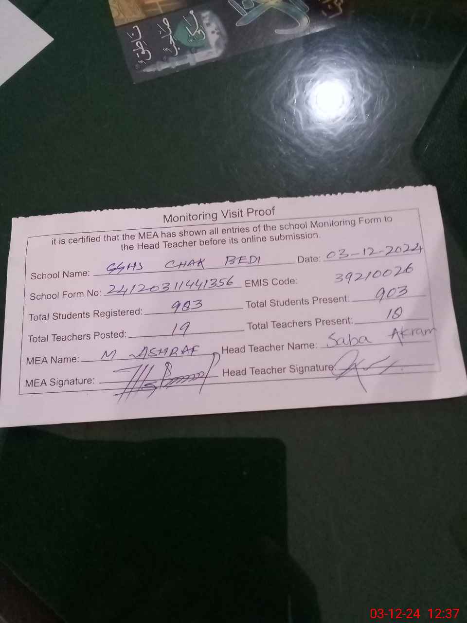| EMIS Code: 39210026 | Name of School: GGHS CHAK BEDI | |||