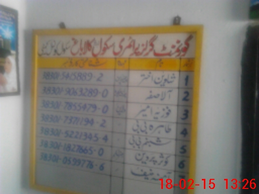 | EMIS Code: 38310303 | Name of School: GGPS NO. 2 KALA BAGH | |||