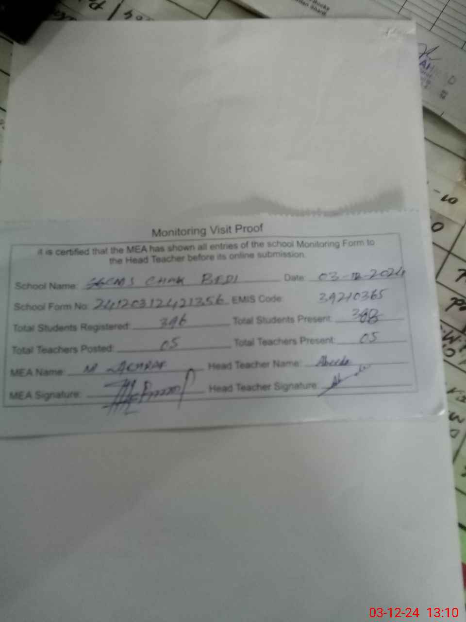 | EMIS Code: 39210365 | Name of School: GGCMS CHAK BEDI | |||