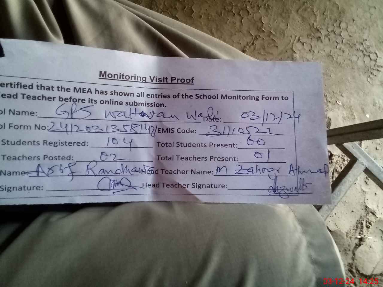 | EMIS Code: 31110522 | Name of School: GPS WATTWAN WALI EAST | |||