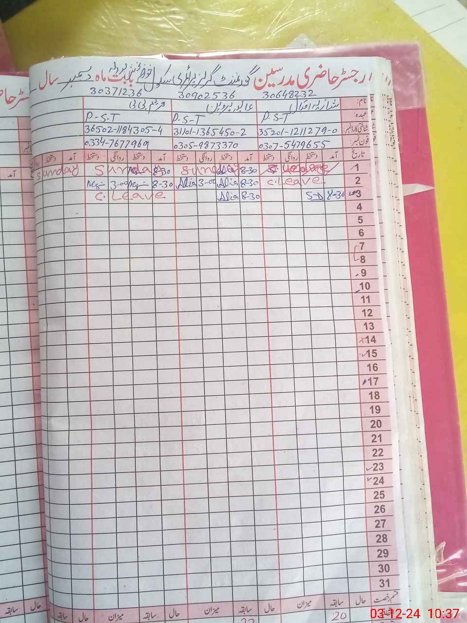 | Name: SA**** PE**** Designation: (School Headmaster's/Headmistress's) PST Phone/Cell Number: 03**** |