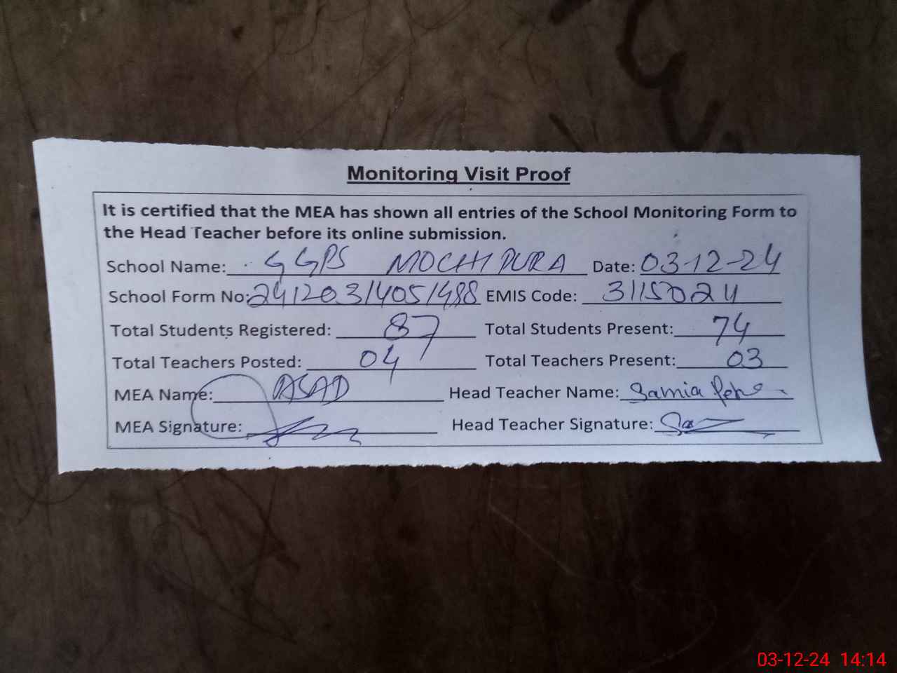 | EMIS Code: 31150211 | Name of School: GGPS MOCHI PURA | |||