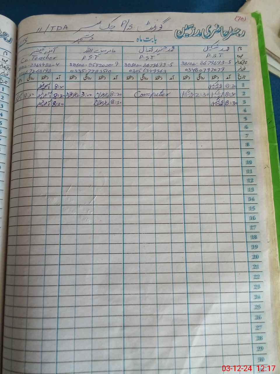 | Name: MU**** SH**** Designation: (School Headmaster's/Headmistress's) PST Phone/Cell Number: 03**** |