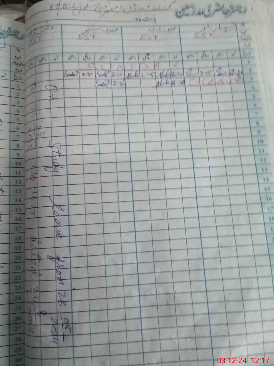 | 36**** | Ai**** Bi**** | Regular | 30 | 0 | 0 | 0 | 0 | 0 | 30 | 0 | 0 | Study | |