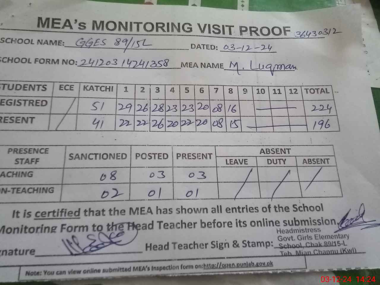 | EMIS Code: 36430312 | Name of School: GGES 89/15-L, P/O 87/15-L, MIAN CHANNU | |||