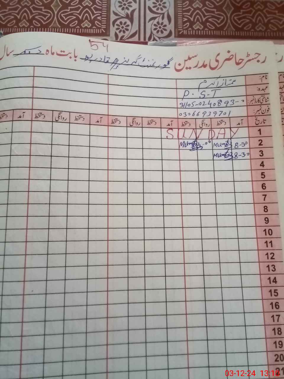 | Name: Mu**** Ak**** Designation: (School Headmaster's/Headmistress's) PST Phone/Cell Number: 03**** |