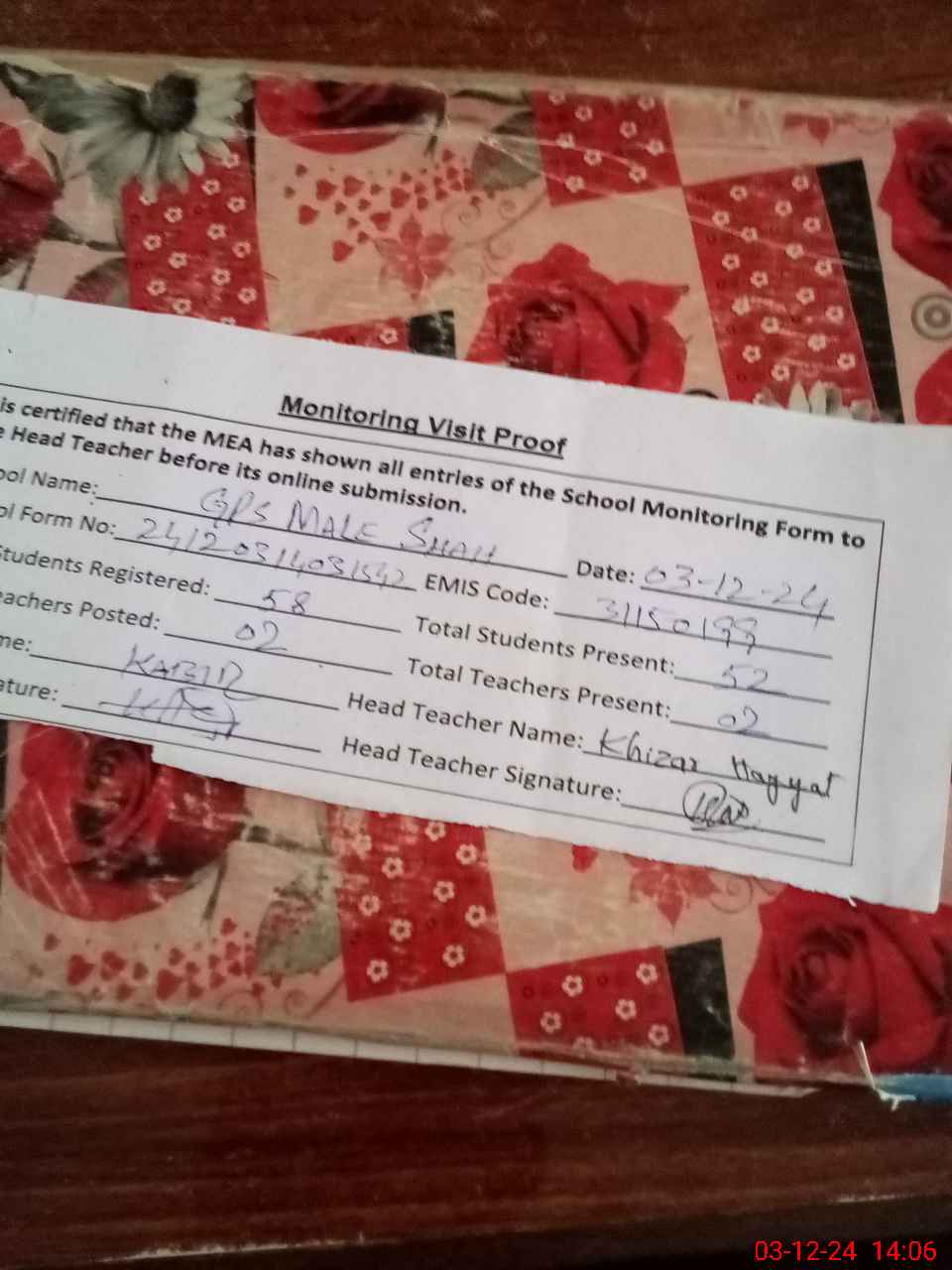 | EMIS Code: 31150199 | Name of School: GPS MALE SHAH | |||