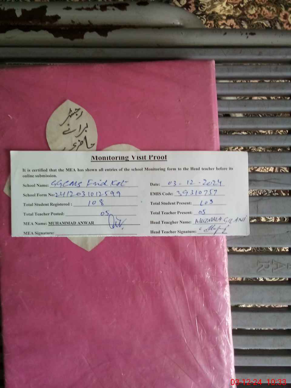 | EMIS Code: 39310757 | Name of School: GGCMS FAREED KOT | |||
