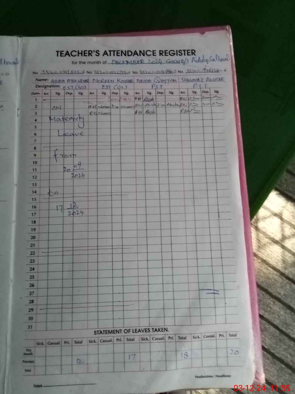 | 35**** | Ab**** Mu**** Ah**** | Regular | 30 | 0 | 0 | 30 | 0 | 0 | 0 | 0 | 0 | Maternity | |