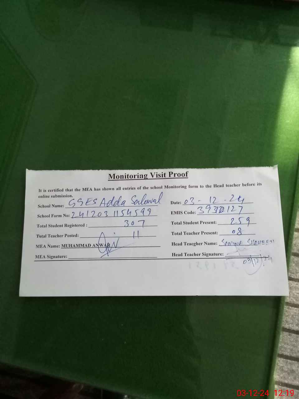 | EMIS Code: 39310127 | Name of School: GGES ADDA SAHLOWAL | |||