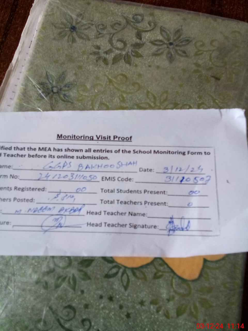 | EMIS Code: 31110507 | Name of School: GGPS BAKHOO SHAH | |||
