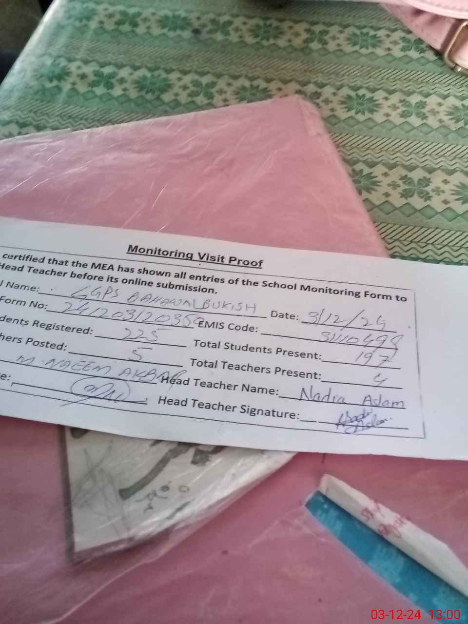 | EMIS Code: 31110499 | Name of School: GGPS KOT BAHAWAL BUKHASH | |||