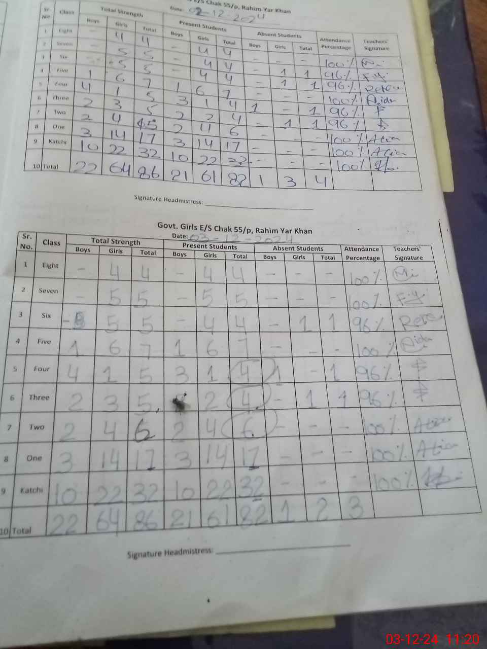 | Remarks (Use Separate Page if Required): School is functioning in the building of GPS Chak 55 P Original building is dangerous Only boundary wall and toilet block is ok NSB record Bank statement available Cash book not available Difference of physical attendance and roznamcha 18 students marked present additionally Roznamcha pic attached in Head teacher place | |||||