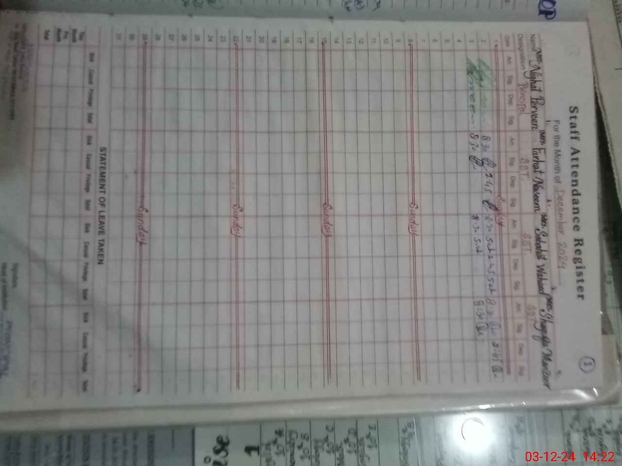 | CNIC | Full Name | Designation | R/C | Absence During Last Calender Month |