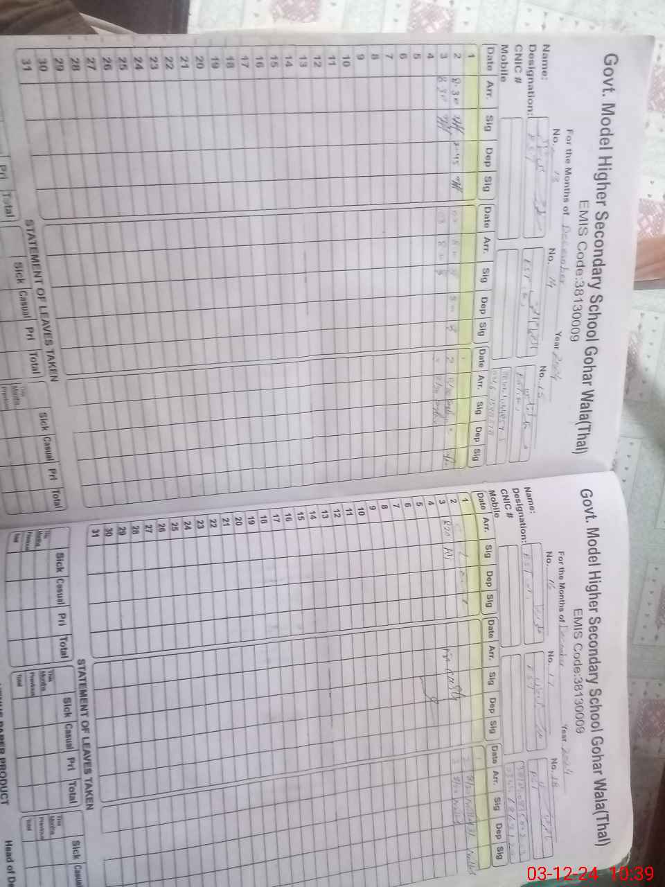 | EMIS Code: 38130009 | Name of School: GHSS GOHAR WALA | |||