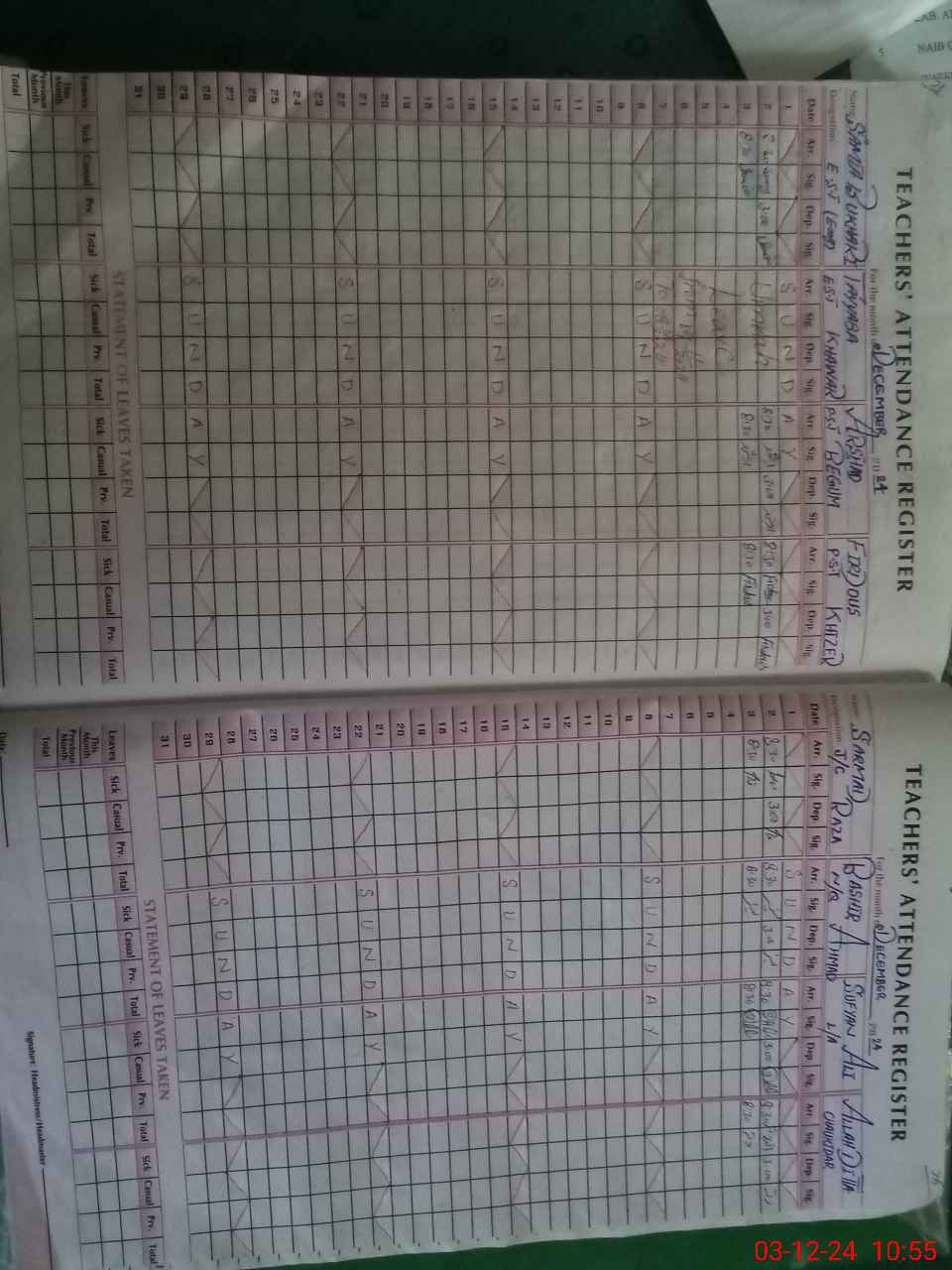 | CNIC | Full Name | Designation | R/C | Absence During Last Calender Month |