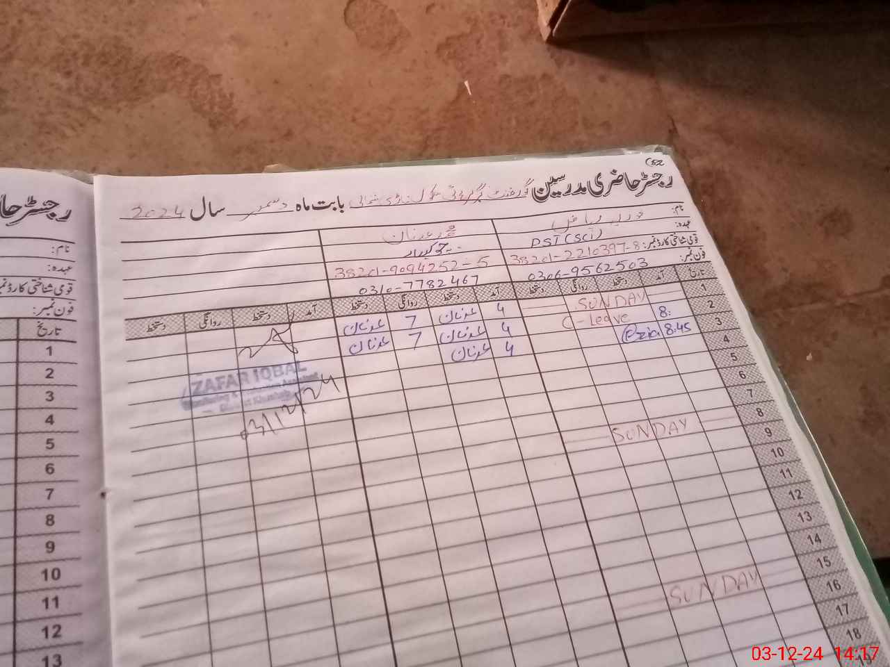 | Name: Gh**** Pe**** Designation: (School Headmaster's/Headmistress's) SST Phone/Cell Number: 03**** |