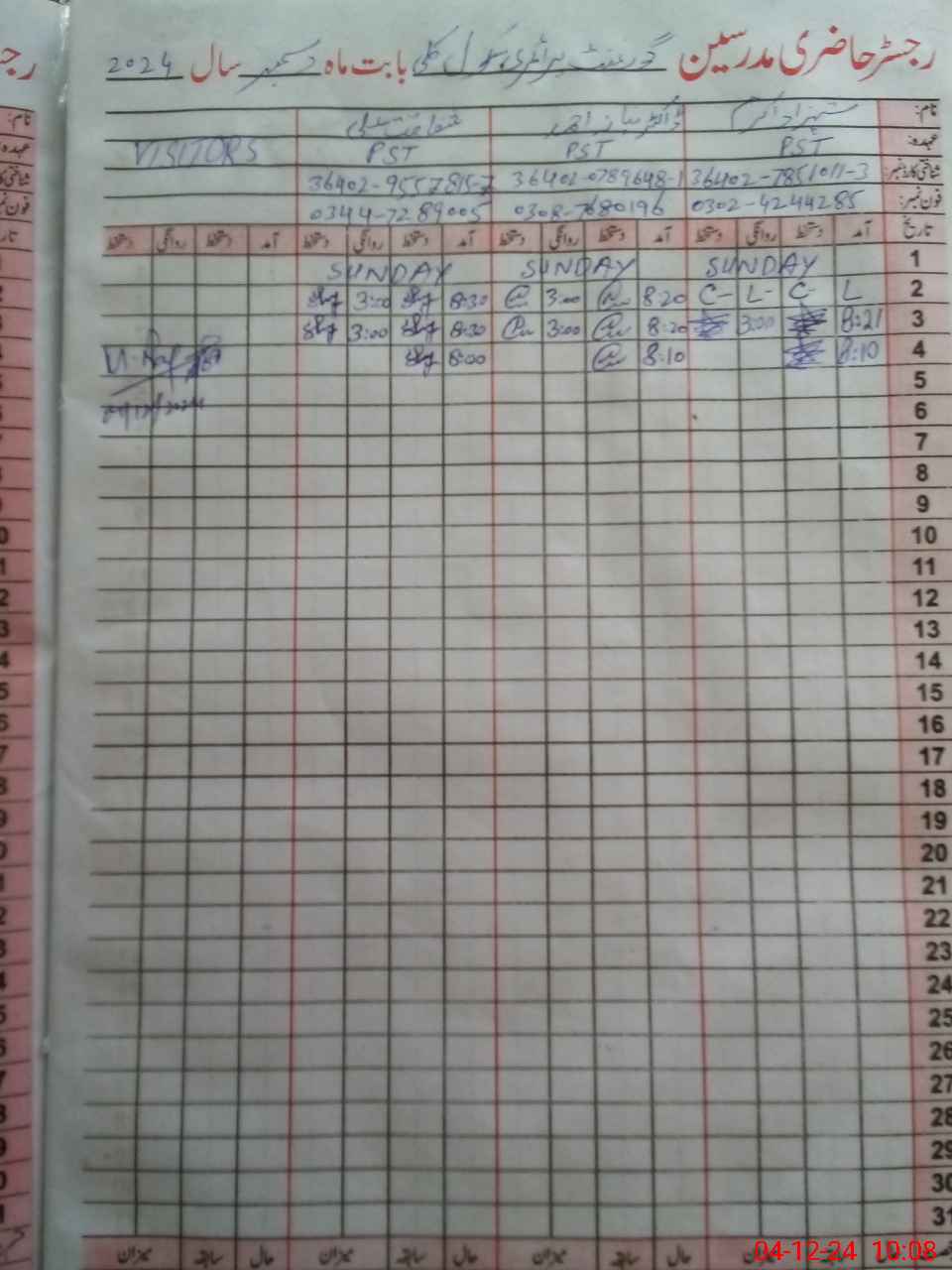 | Name: SH**** AK**** Designation: (School Headmaster's/Headmistress's) PST Phone/Cell Number: 03**** |
