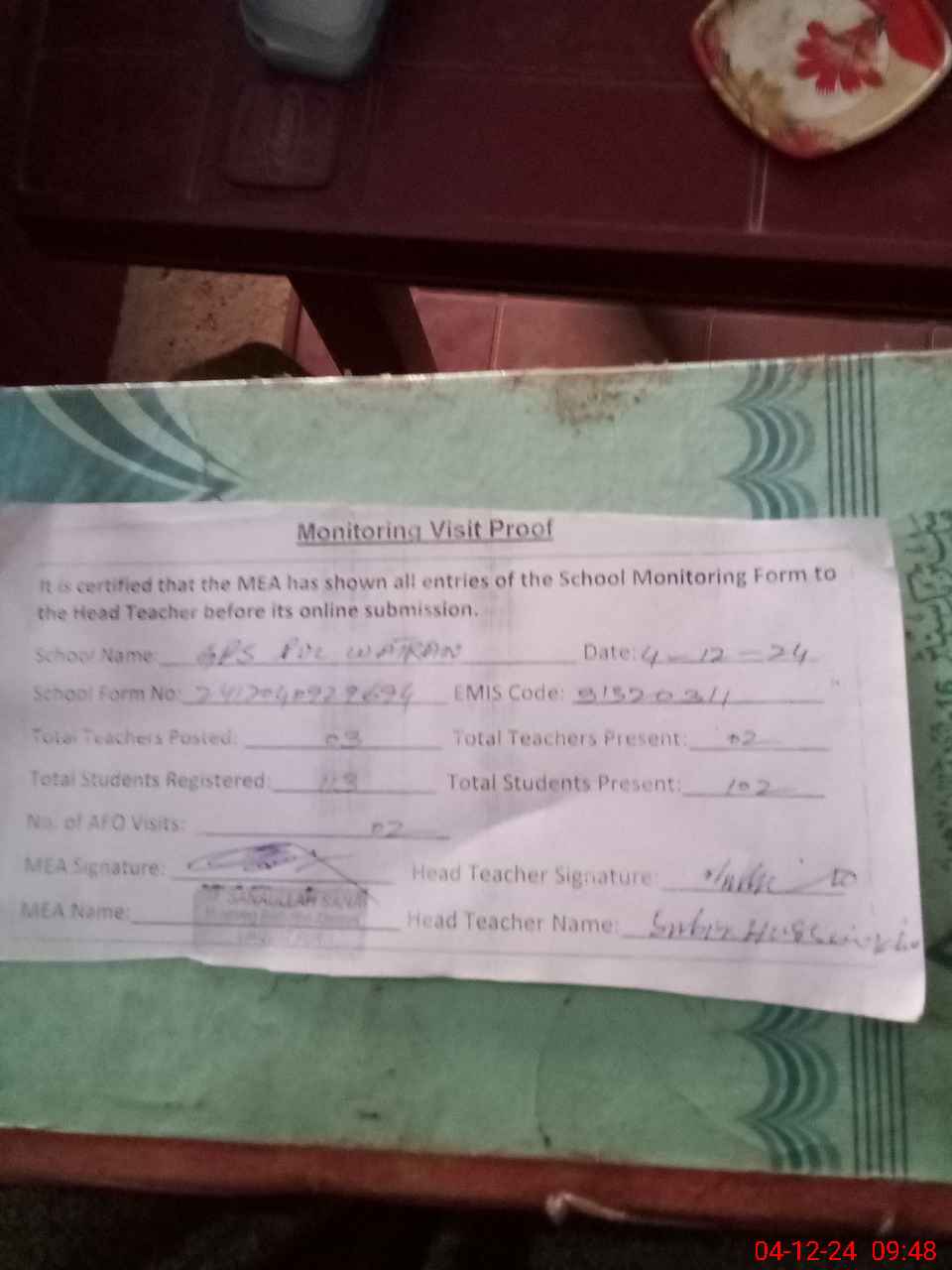 | EMIS Code: 31320311 | Name of School: GPS PUL WATRAN | |||