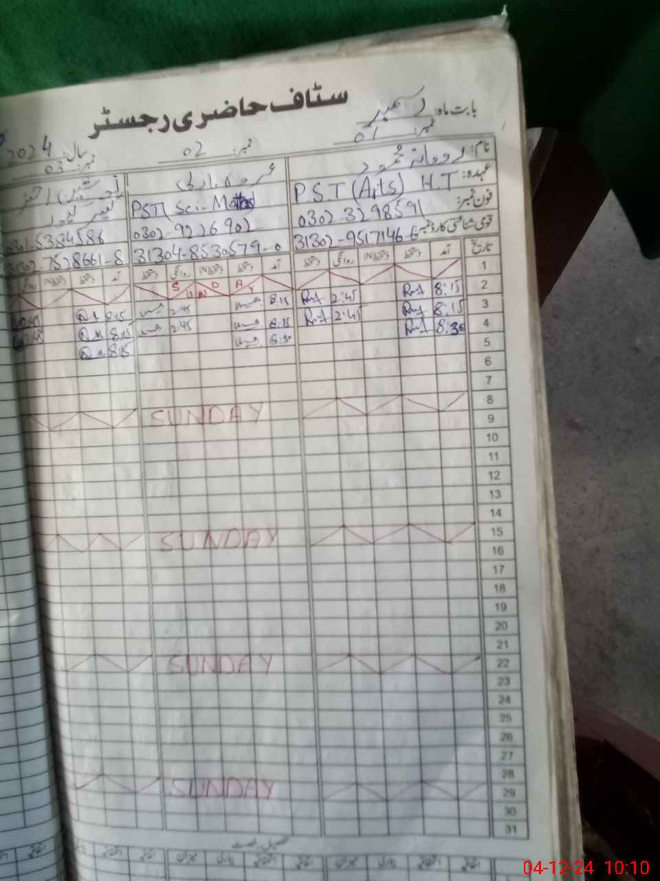 | Name: RO**** ME**** Designation: (School Headmaster's/Headmistress's) PST Phone/Cell Number: 03**** |