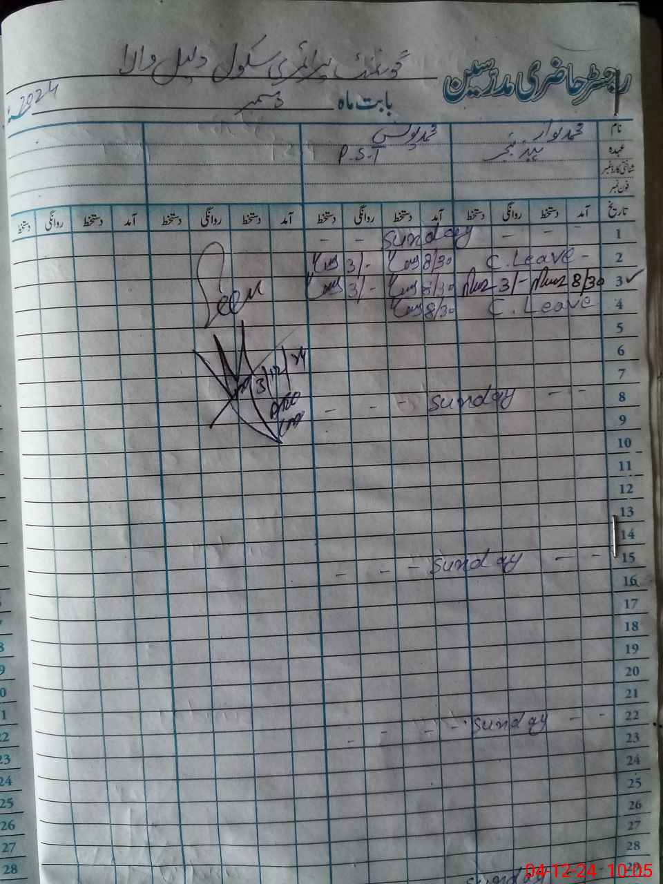 | 33**** | Wa**** UlHa**** | PST | Regular | 0 | 0 | 0 | 0 | 0 | 0 | 0 | 0 | 0 | Absent (Un-Authorized) |