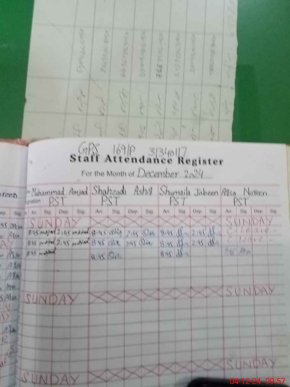 | CNIC | Full Name | Designation | R/C | Absence During Last Calender Month |
